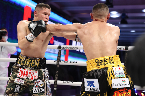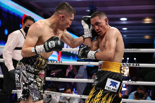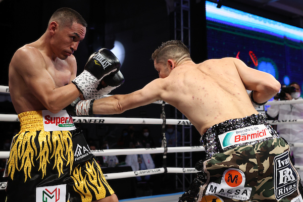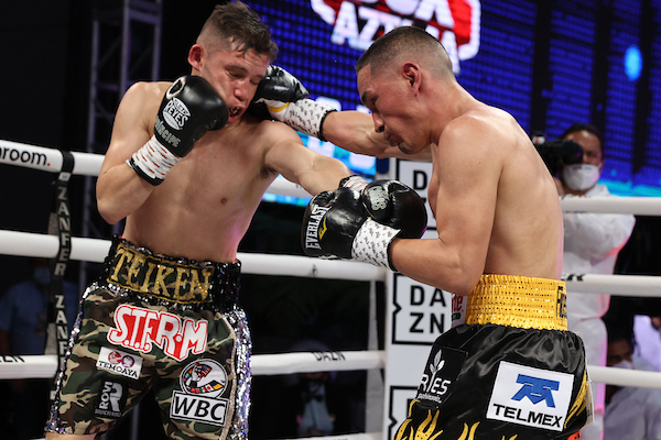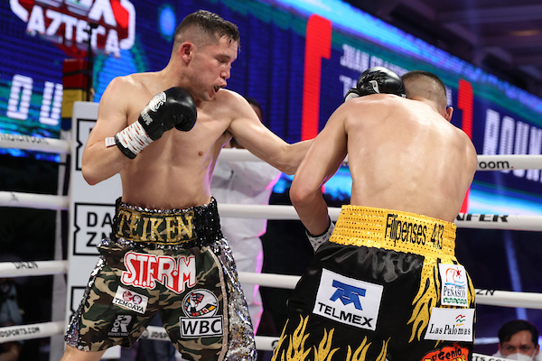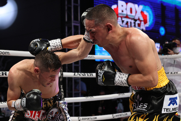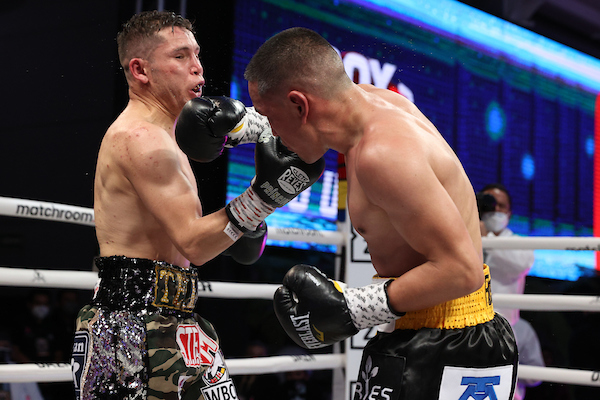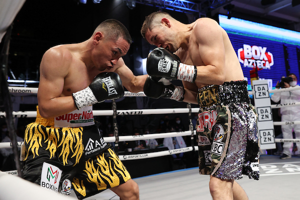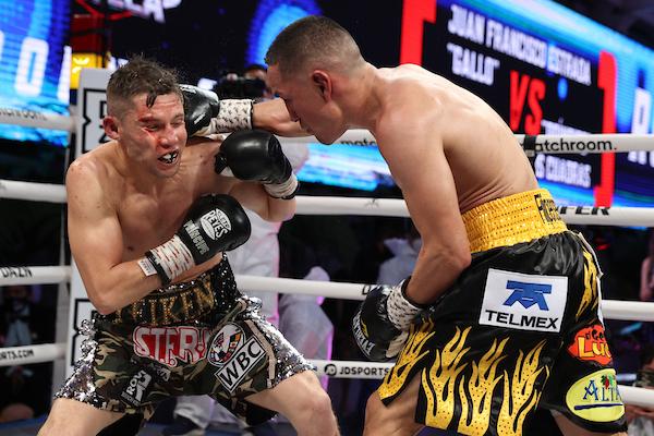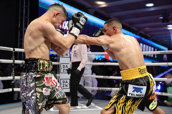 October 23, 2020; Mexico City, Mexico; Juan Francisco Estrada and Carlos Cuadras during their Matchroom bout on October 23, 2020. Mandatory Credit: Ed Mulholland/Matchroom.