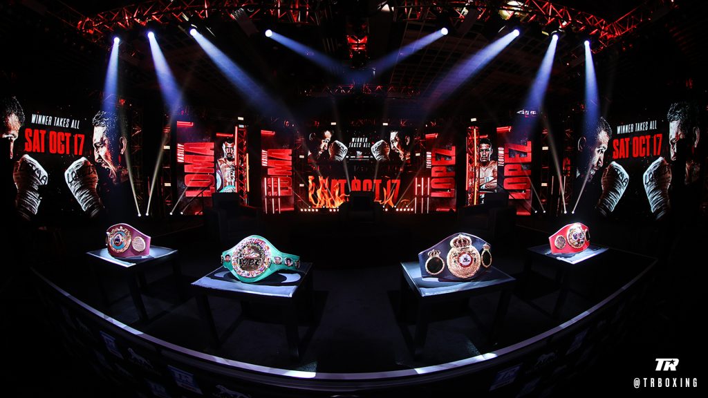 “Creo que es sólo un cuadrilátero y los jueces y la televisión. Eso es todo. Y, por supuesto, cuatro cinturones. Sólo pienso en mi futura pelea y en la del sábado. Eso es todo. Para mí, creo que será una pelea de ajedrez.”