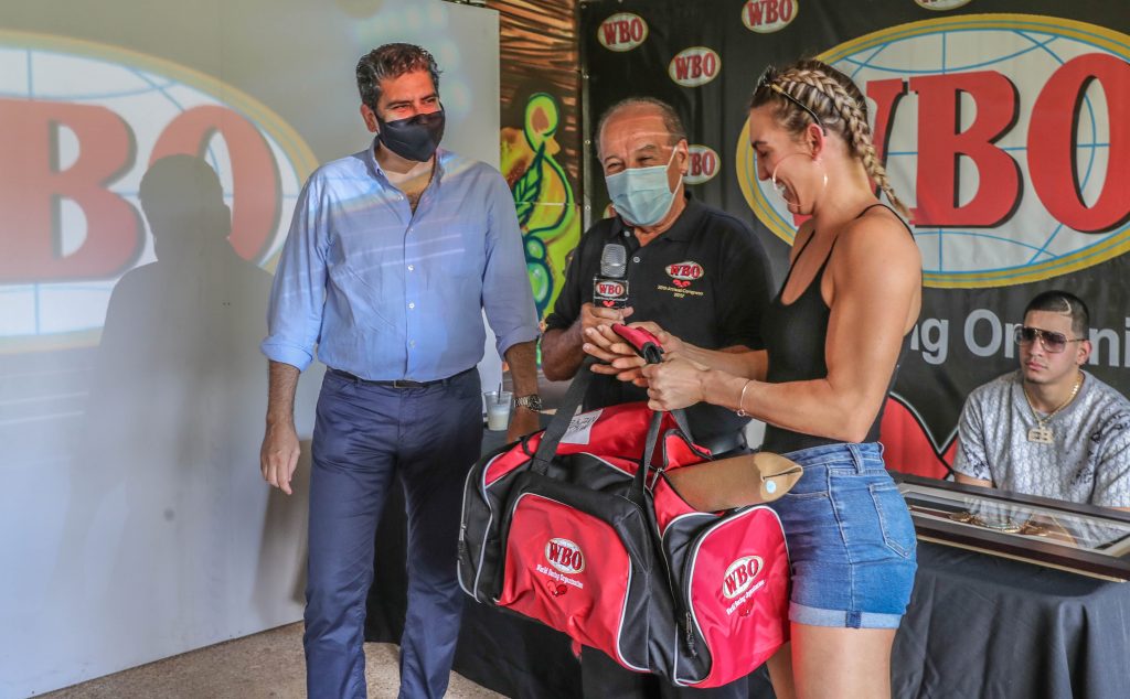 Naranjito, Puerto Rico – La Organización Mundial de Boxeo (OMB), presidida por Francisco ‘Paco’ Valcárcel celebró esta tarde la ceremonia oficial de presentación de cinturones dedicada a la nueva Campeona Mundial Junior de Peso Ligero de la OMB, Mikaela Mayer (14-0, 5 KO’s), de California. Durante el evento, se entregó un premio especial de reconocimiento a la sensación de peso super-medio Edgar Berlanga (15-0, 15 KO’s), de Nueva York.